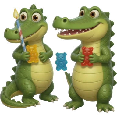 Cute alligator wearing a vest and tie at a party with confetti emoji