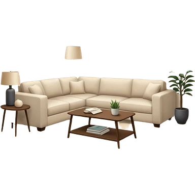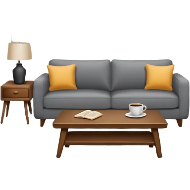A stylish living room with sofa, coffee table, and decorative items emoji