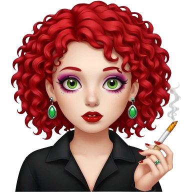 bright red curly hair alt girl with makeup and piercings smoking a joint emoji