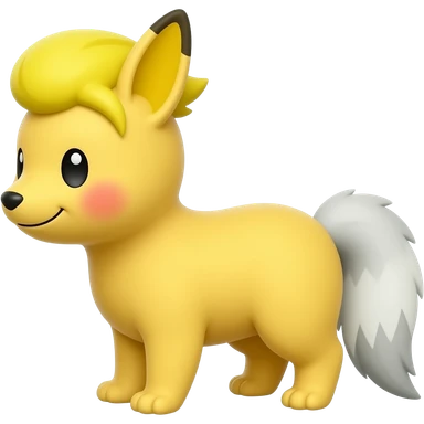 cabeça amarela, bochechas vermelhas, topete amarelo e cauda cinza longa emoji