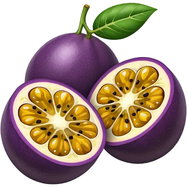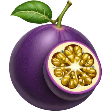 passion fruit, purple outer skin with yellow juicy flesh and black seeds emoji | AI Emoji Generator