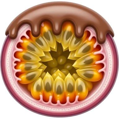 passion fruit, purple outer skin with yellow juicy flesh and black seeds emoji