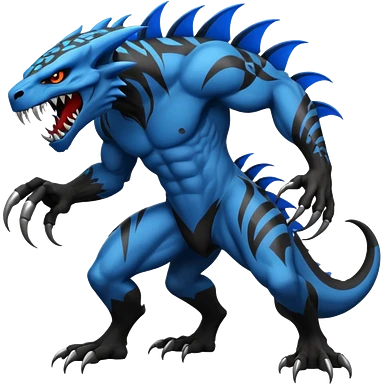 Black and Blue Venom-Stitch-Zekrom-Salandit-Sneasel-fusion, full body, tribal markings emoji