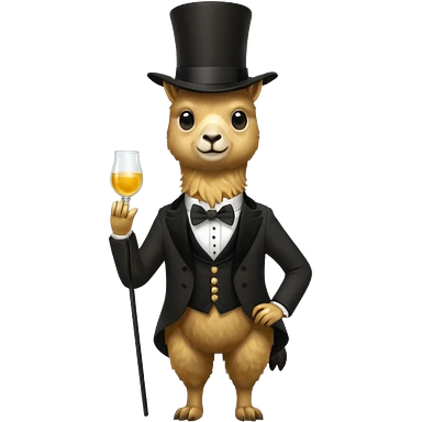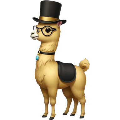 A small golden llama silhouette wearing a black top hat and a monocle full body shot emoji