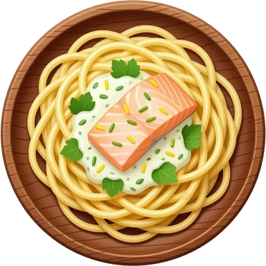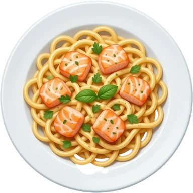 Pasta, salmon on a plate emoji