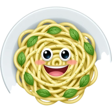 European cuisine humanless avatar in modern emoji-style illustration. Plate with pasta and bread, neutral warm colors, simple shapes, flat design, elegant and friendly. emoji