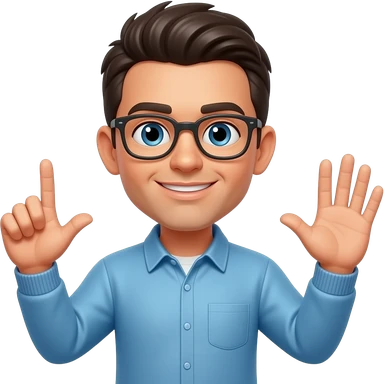 Homme qui tient un 6 et un 7 dans chaque main emoji