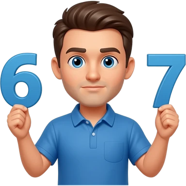an annoying person saying "6 7" every second waving their hands, and their body is just the letters 6 and 7. they are blue. their eyes are at the top of the 7 and the hole in the 6.the have black legs and arms, but their hands are white. emoji