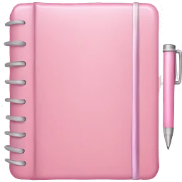Aesthetic romantic soft aesthetic pastel light pink note journal book with a white heart motive on it + a pink pen next to it emoji