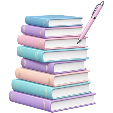 stacked pastel books with soft shadows, gentle sparkle, minimalistic clean girl vibe emoji