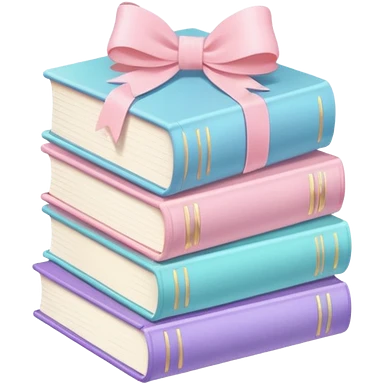 stacked pastel books with soft shadows, gentle sparkle, minimalistic clean girl vibe with a bow on top emoji
