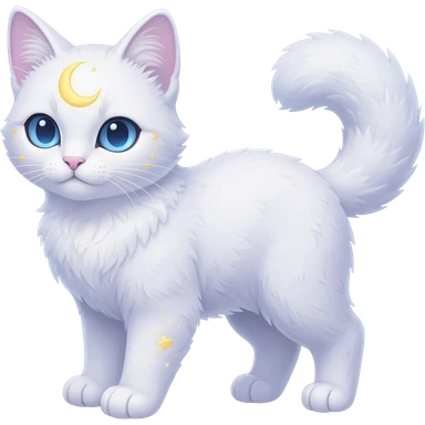 White fuzzy pastel Magical Celestial Lunar-powered Fantasy Feline with lunar markings with blue eyes emoji