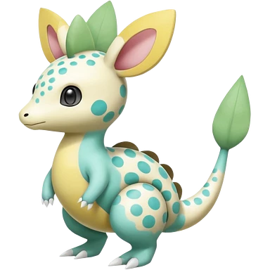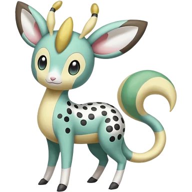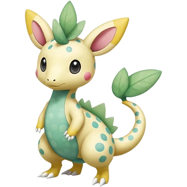 Blushing Spotted Dotted randomly Splash-marked Meloetta-Leavanny-Gallade-Ampharos-Inteleon-Nidoqueen-Fakémon-Pokémon-hybrid-fusion-creature, full body emoji