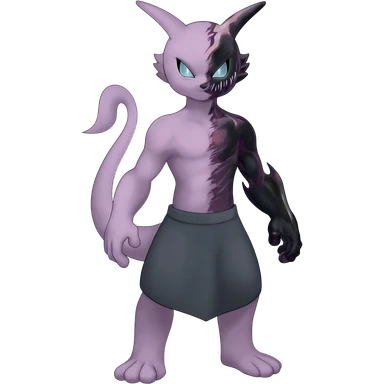Pastel dull greyish anthropomorphic digitigrade Beerus-Mewtwo-Venom-Minccino-fusion-animal-ET-species-creature, full body emoji