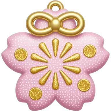 Pastel Sakura-pink and white omamori with shiny glittery gold emoji
