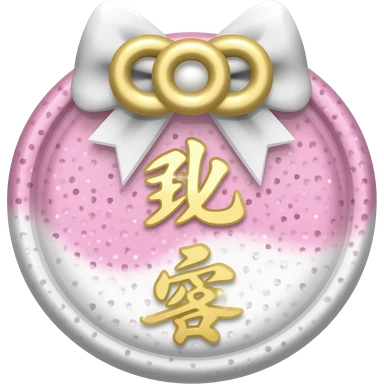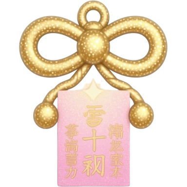 Pastel pink and white Shinto omamori charm with shiny glittery gold emoji