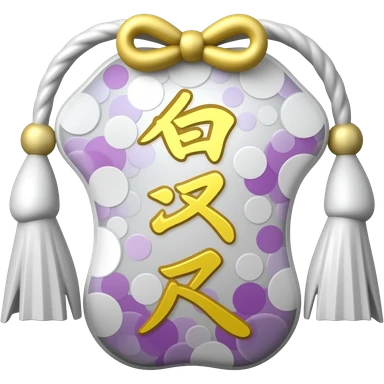 Pastel dusty-purple violet-indigo omamori with white tassel and shiny text emoji