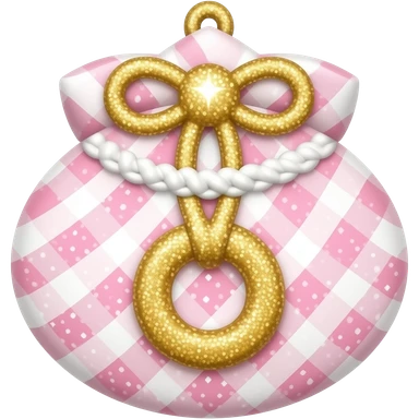 Pastel pink and white omamori with shiny glittery gold emoji