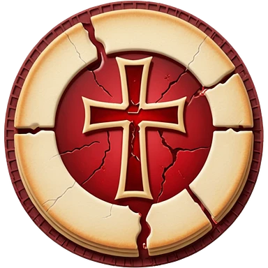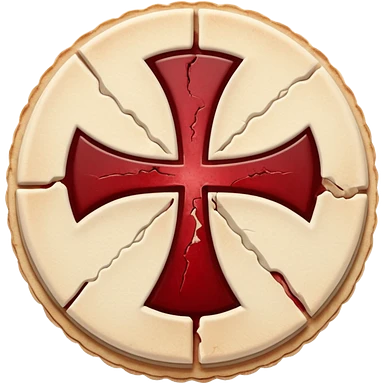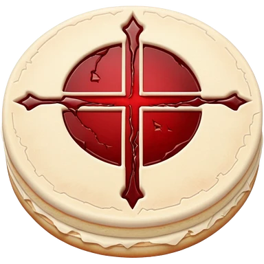Cracked communion wafer bleeding from the center, heretical gothic symbol emoji