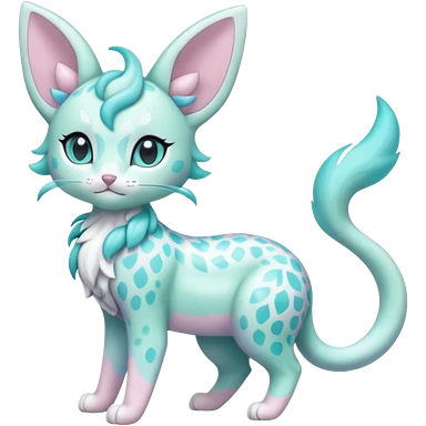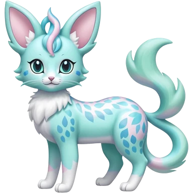 Pastel Mint-Aqua Soft-Iridescent Gentle Floral-Patterned Feline Sylveon-Liepard-hybrid-creature (full body) emoji