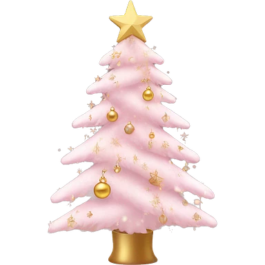 A Christmas tree with pastel pink and gold decorations, delicate ornaments, a star on top, and small twinkling lights. Background includes soft snowflakes. emoji