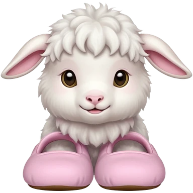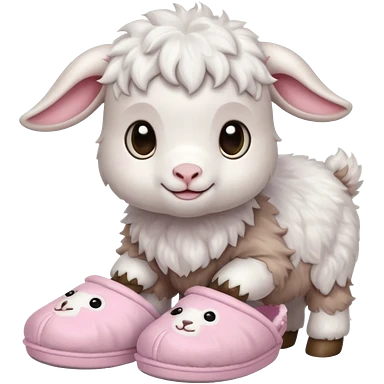 a baby goat emoji wearing pastel pink chunky slippers emoji