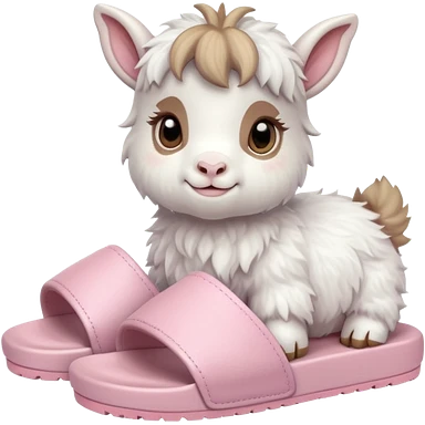 a baby goat emoji wearing pastel pink chunky slides emoji