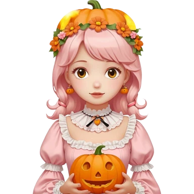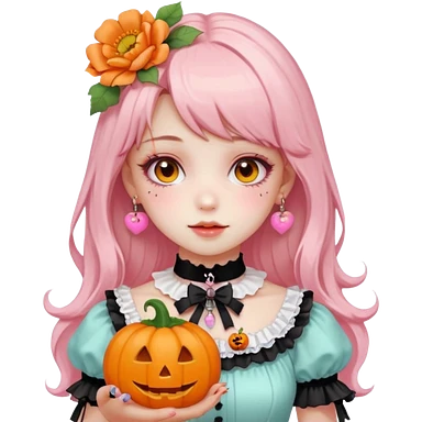 pastel pink orange halloween Lolita flower pumpkin choker emoji