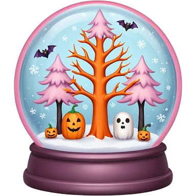 pastel pink orange halloween tree snow globe emoji | AI Emoji Generator