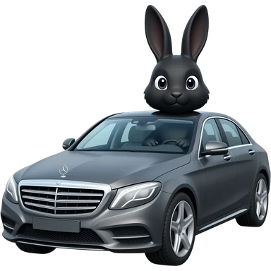 A black rabbit with white teeth and white eyes with a black bowtie holding a black guitar emoji