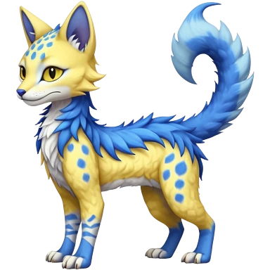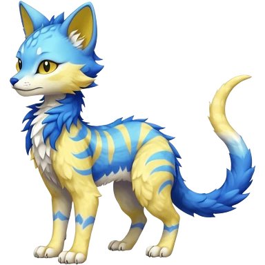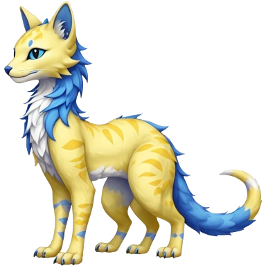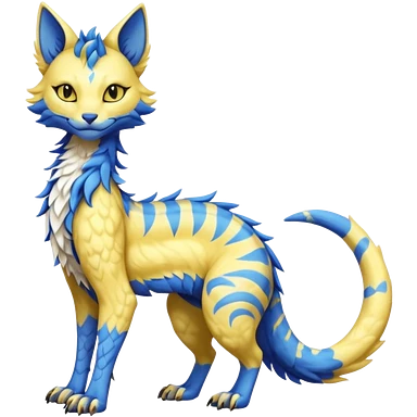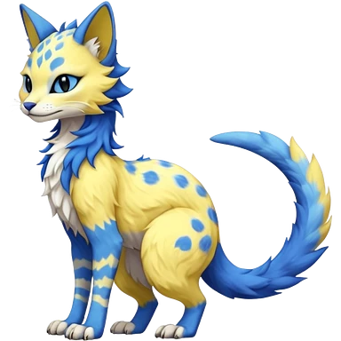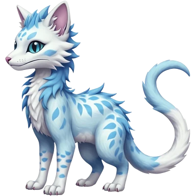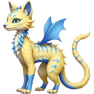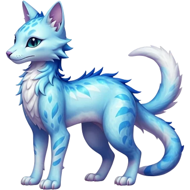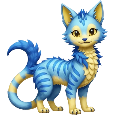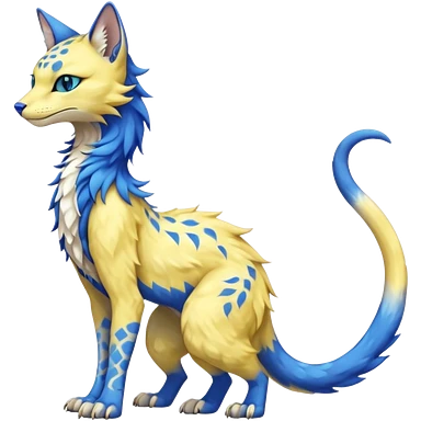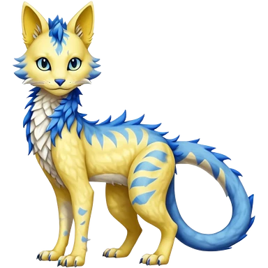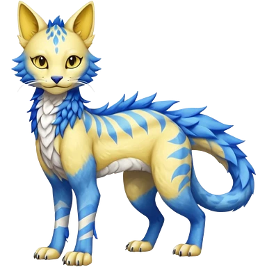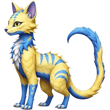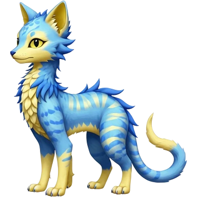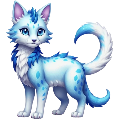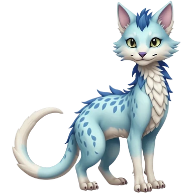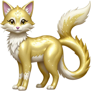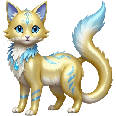 Pastel realistic divine glowing gold-glittery and light pastel blue glimmering glooming shiny glossy glittery holy cute elegant beautiful fantasy fae-feline-vernid-sergal-fursona animal creature with a tufted tail full body with intricate markings emoji