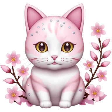 Pastel shiny glittery pastel pink and white Sakura flowers cat with sprinkles on top emoji