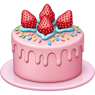 white cake with strawberries, colorful sprinkles, and small flowers on top emoji
