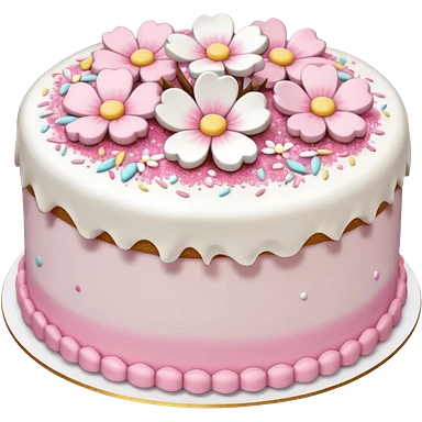 Pastel shiny glittery pastel pink and white Sakura flowers cake with sprinkles on top emoji | AI Emoji Generator