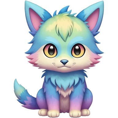 Pastel warm colorful-green-brown-gradient anime-styled edgy cool badass cute random Fakémon-creature, with random markings, full body emoji | AI Emoji Generator