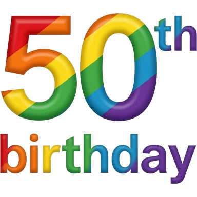 Alles Gute zum 50. Geburtstag- Text geschrieben in Regenbogen-Farben emoji