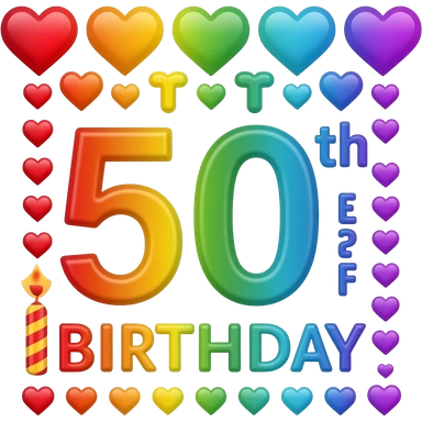 Alles Gute zum 50. Geburtstag- geschrieben in Regenbogen-Farben und mit den Herzen am Anfang und Ende emoji