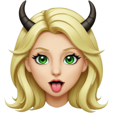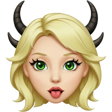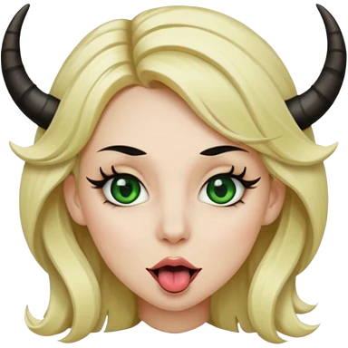 Emoji femme blonde cheveux blond, yeux vert avec de long cils noir qui tire la langue et à des cornes emoji