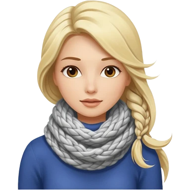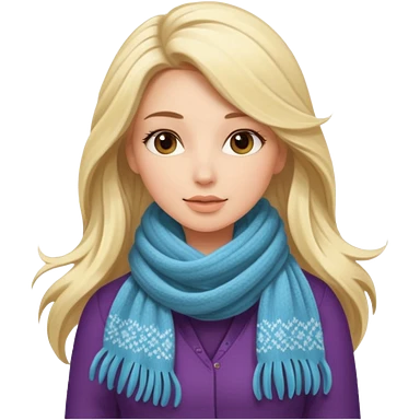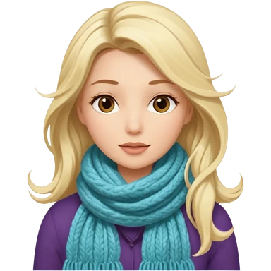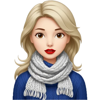 A stylish woman in a long and knitted scarf, hair flowing in the winter breeze. emoji