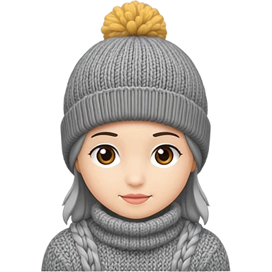 A girl with long curls, a pastel-colored hair clip, and a knitted cardigan with a bunny pattern, looking cute. emoji