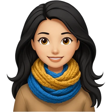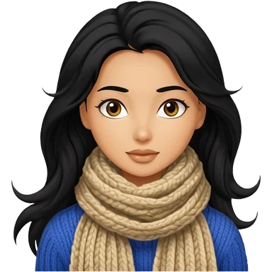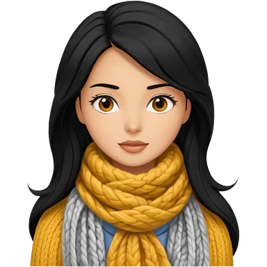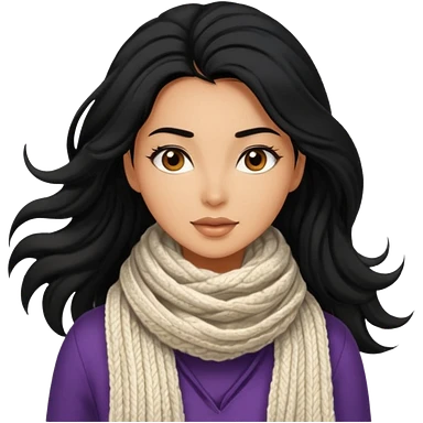 A black hair stylish woman in a long and knitted scarf, hair flowing in the winter breeze. emoji