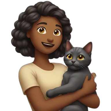 a girl with long wavy brown hair and brown eyes petting a cat, emoji style emoji
