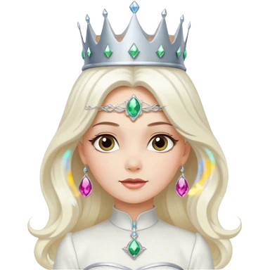 The Good Witch from The Land of Oz with long platinum blonde hair, white outfit and crown emoji
