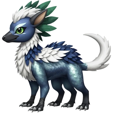 Shiny Black Grey White and Dark-Green Trico-Nargacuga-Silvally-Skiddo-Sprigatito-Absol-fusion (full body) emoji