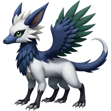 Shiny Black Grey White and Dark-Green Trico-Nargacuga-Silvally-Absol-fusion (full body) emoji