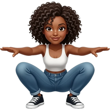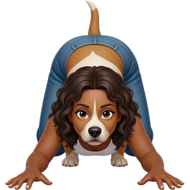 Coloca a la mujer afroamericana de frente, agachada en forma de perro, culo más alto que la cabeza, con los brazos estirados hacia delante, vista frontal emoji