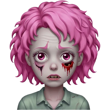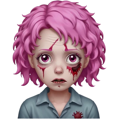 Sad zoombie curly pink hair emoji