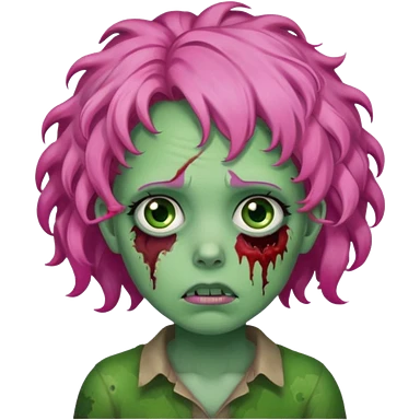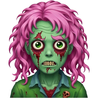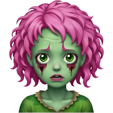 zoombie curly long pink hair, green skin emoji