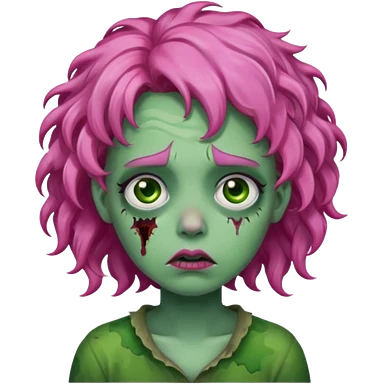 Sad zoombie curly pink hair, green skin emoji