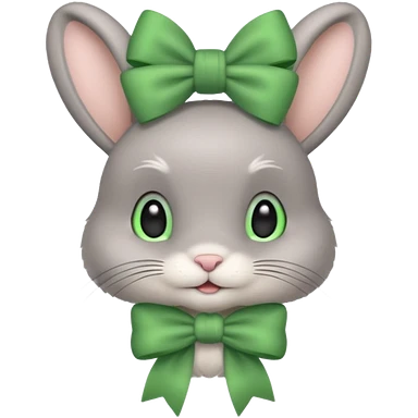 grey bunny with green bow on head emoji